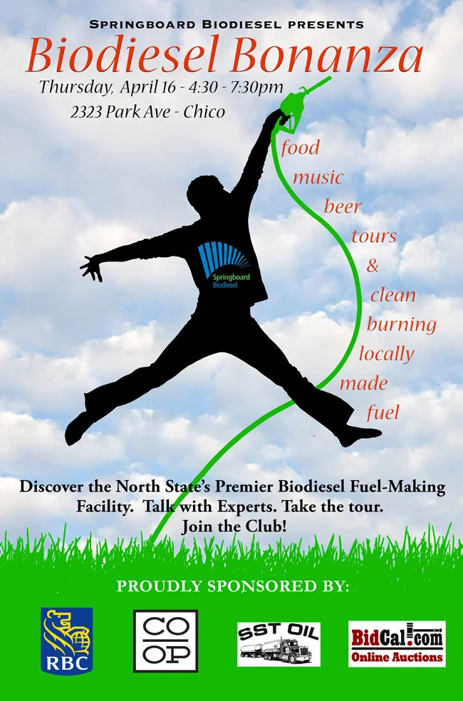 The Co-op is thrilled to be partnering with Springboard Biodiesel to present their Biodiesel Bonanza—and opportunity to experience firsthand their Chico-based biodiesel manufacturing facility. The Co-op will be providing a plethora of delightful snacks for attendees of this one-of-a-kind event.
